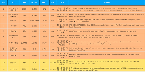 15款创新药包括10款已上市产品:注射用瑞康曲妥珠单抗(艾维达®,研发代号:SHR-A1811)、注射用卡瑞利珠单抗(艾瑞卡®)、苹果酸法米替尼胶囊(艾比特®)、甲磺酸阿帕替尼片(艾坦®)、马来酸吡咯替尼片(艾瑞妮®)、阿得贝利单抗注射液(艾瑞利®)、羟乙磺酸达尔西利片(艾瑞康®)、氟唑帕利胶囊(艾瑞颐®)、瑞维鲁胺片(艾瑞恩®)、海曲泊帕乙醇胺片(恒曲®),以及5款未上市产品,包括KRASG12C抑制剂HRS-7058、KRASG12D抑制剂HRS-4642、选择性的AR-PROTAC(雄激素受体-蛋白降解靶向嵌合体)小分子HRS-5041、抗PD-L1/TGF-βRII双抗瑞拉芙普-α注射液(SHR-1701)、Trop-2 ADC SHR-A1921。2类新药盐酸伊立替康脂质体注射液(II)(越优力®)及国内首仿药昂丹司琼口溶膜(艾其速®)各有1项研究入选。本文特对研究成果做了梳理,带领各位读者领略彩友会医药创新之光。